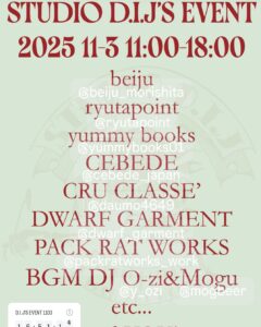 ■日時:11/3(月祝)11:00~18:00 ■場所:東京都江東区森下2丁目5−8 パークサイドフラット 101 新宿線「森下駅」から徒歩約5分。森下公園の隣です。
