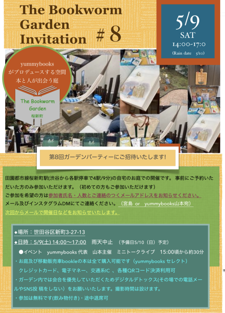 5/9(土)第8回「The Bookworm Garden 桜新町」ガーデンパーティを開催いたします。